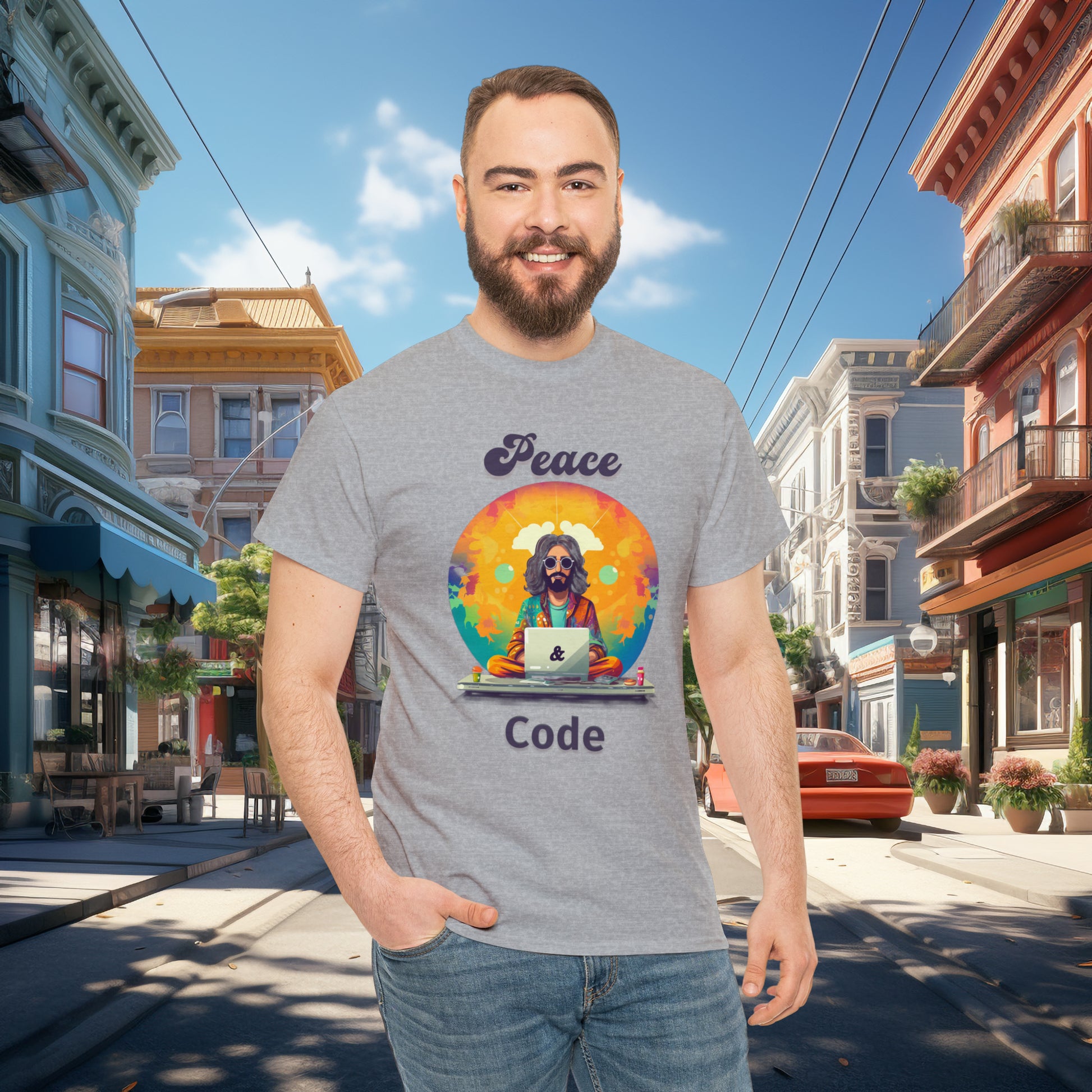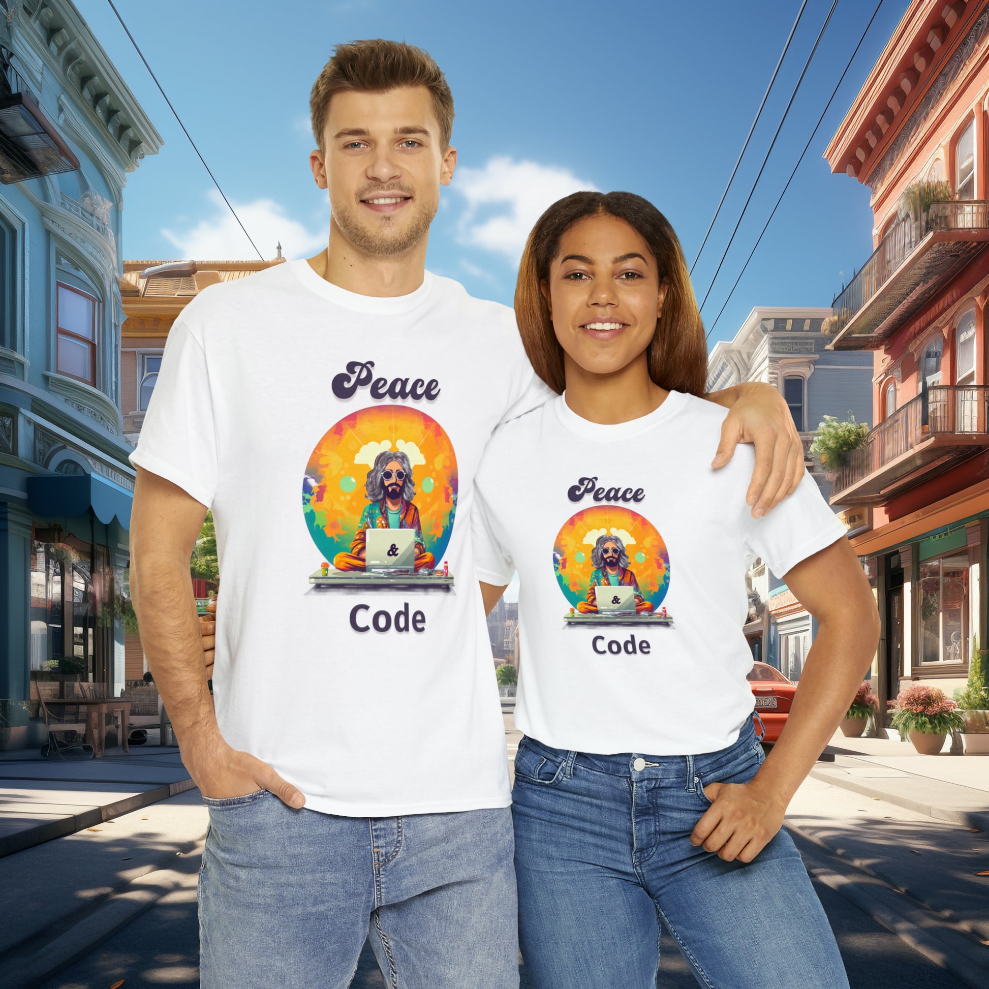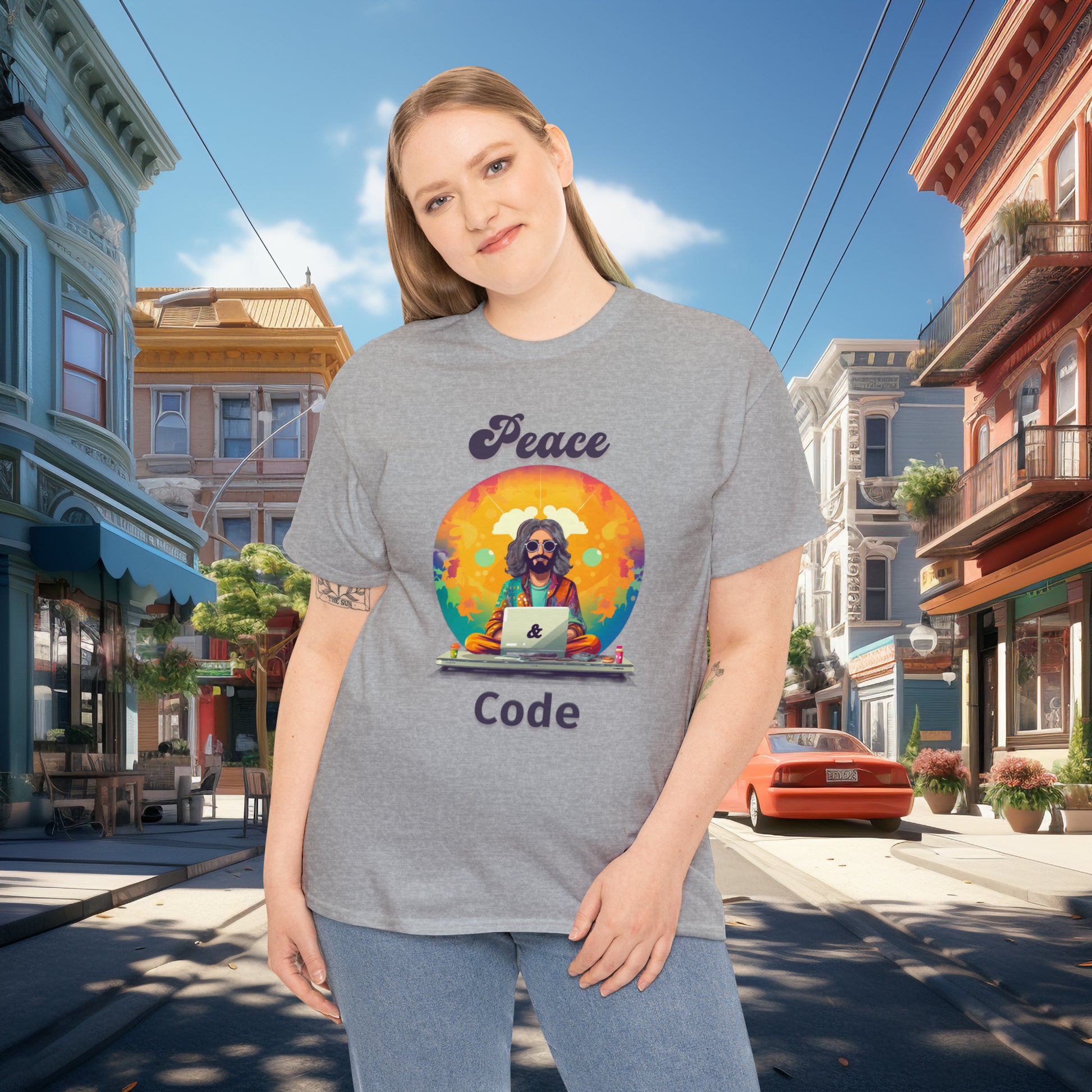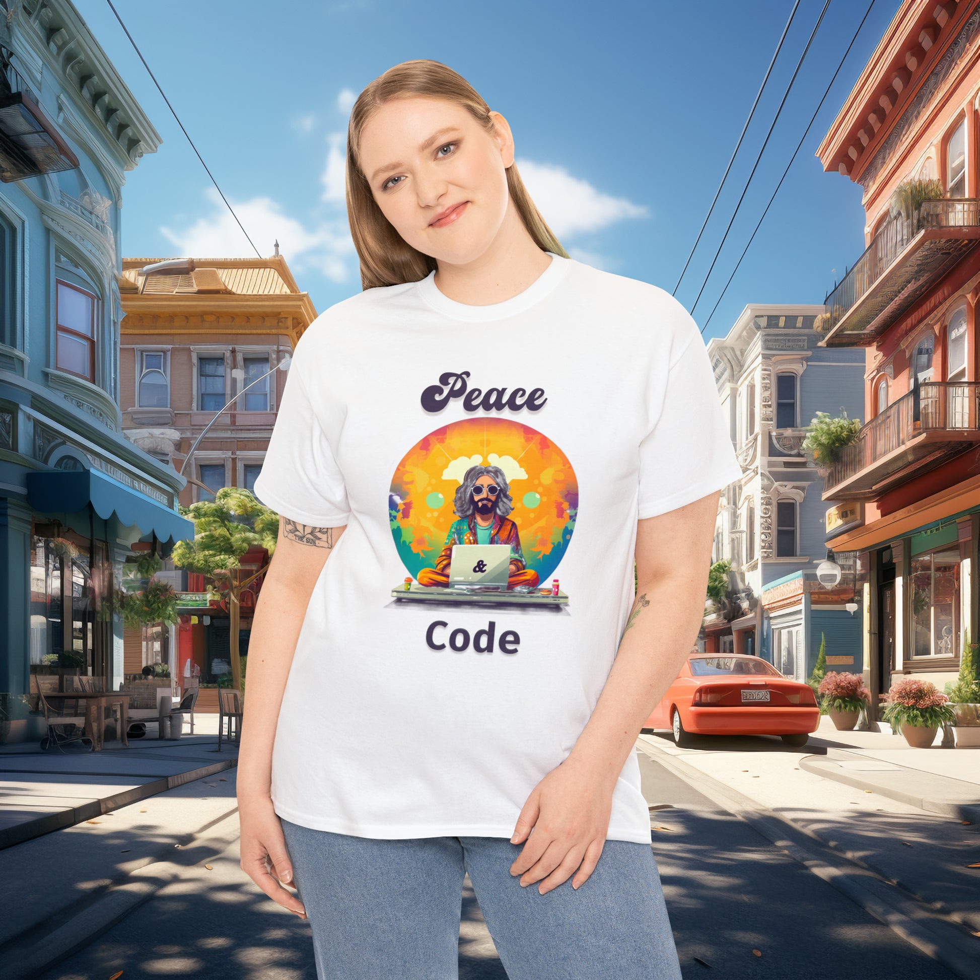Embrassez l'union du bien-être et de la technologie avec notre t-shirt unisexe 'Peace & Code', une pièce maîtresse des t-shirts et pulls humour pinçant de la collection SeeBlings. Parfait pour les codeurs, les programmeurs, et tous ceux qui trouvent leur zen dans la programmation, ce t-shirt mettra en avant votre passion et votre sens de l'humour.