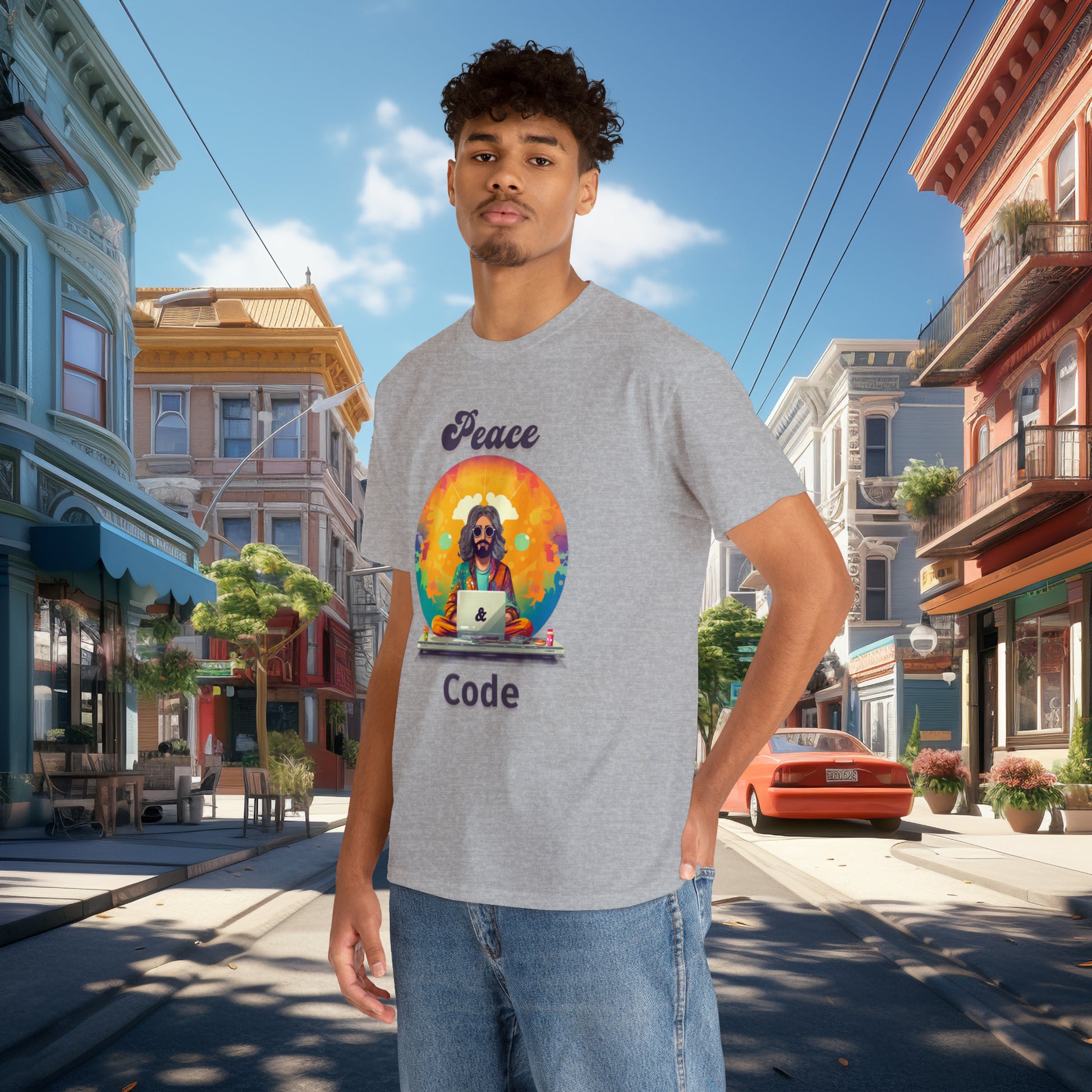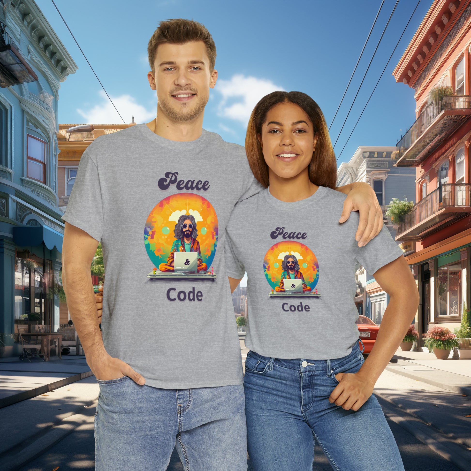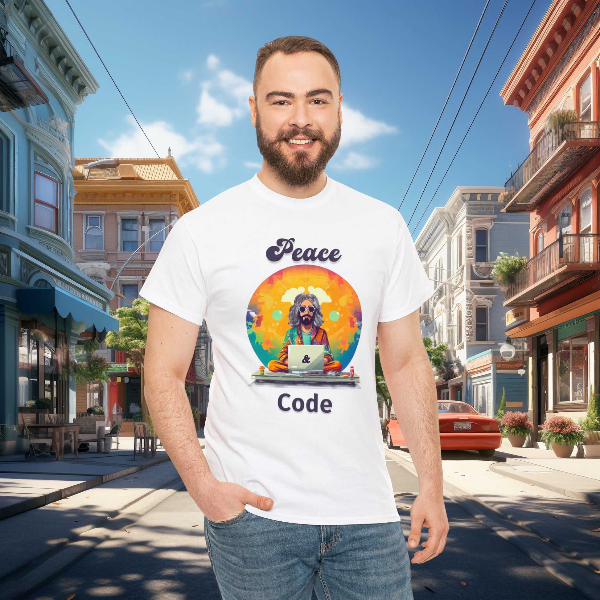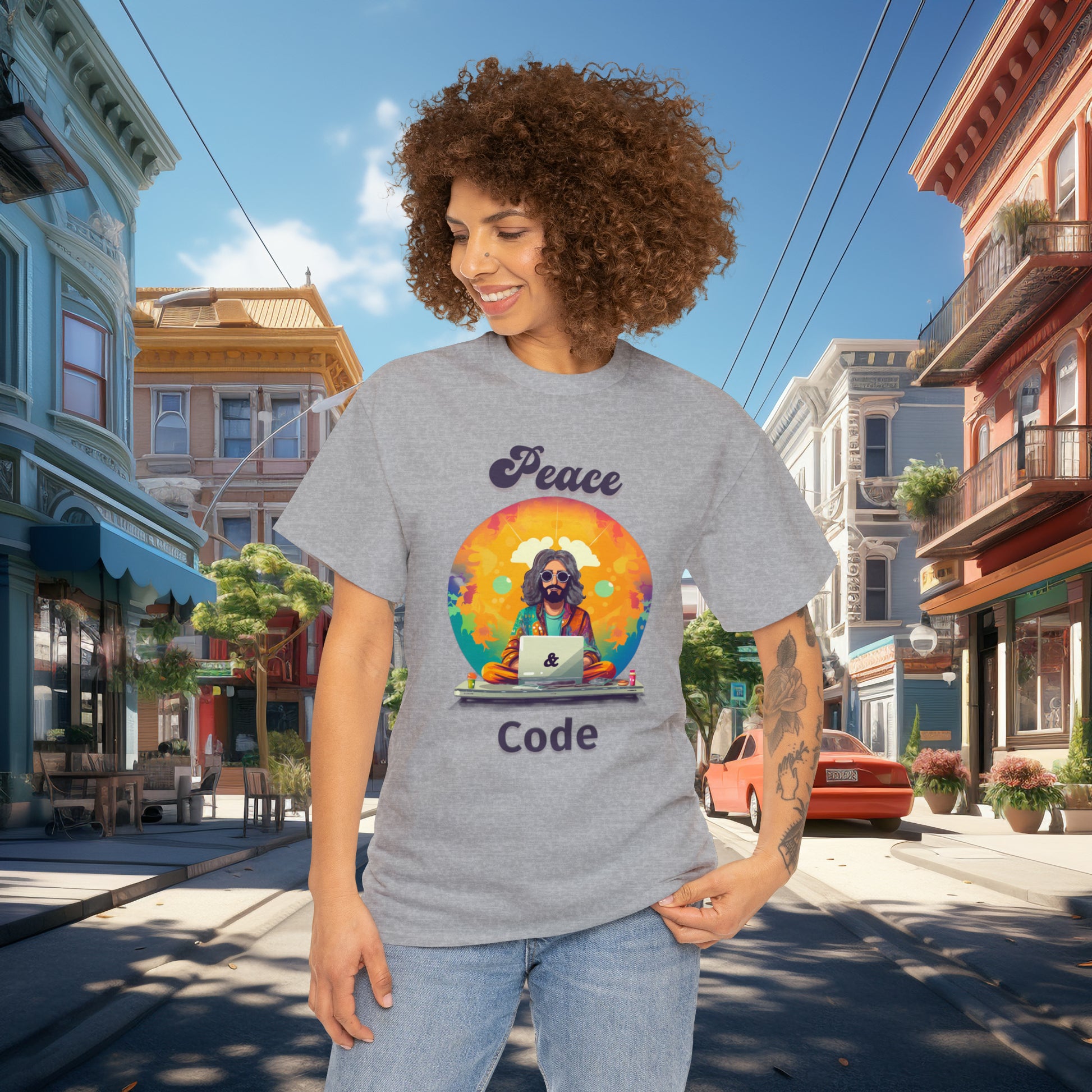 Embrassez l'union du bien-être et de la technologie avec notre t-shirt unisexe 'Peace & Code', une pièce maîtresse des t-shirts et pulls humour pinçant de la collection SeeBlings. Parfait pour les codeurs, les programmeurs, et tous ceux qui trouvent leur zen dans la programmation, ce t-shirt mettra en avant votre passion et votre sens de l'humour.